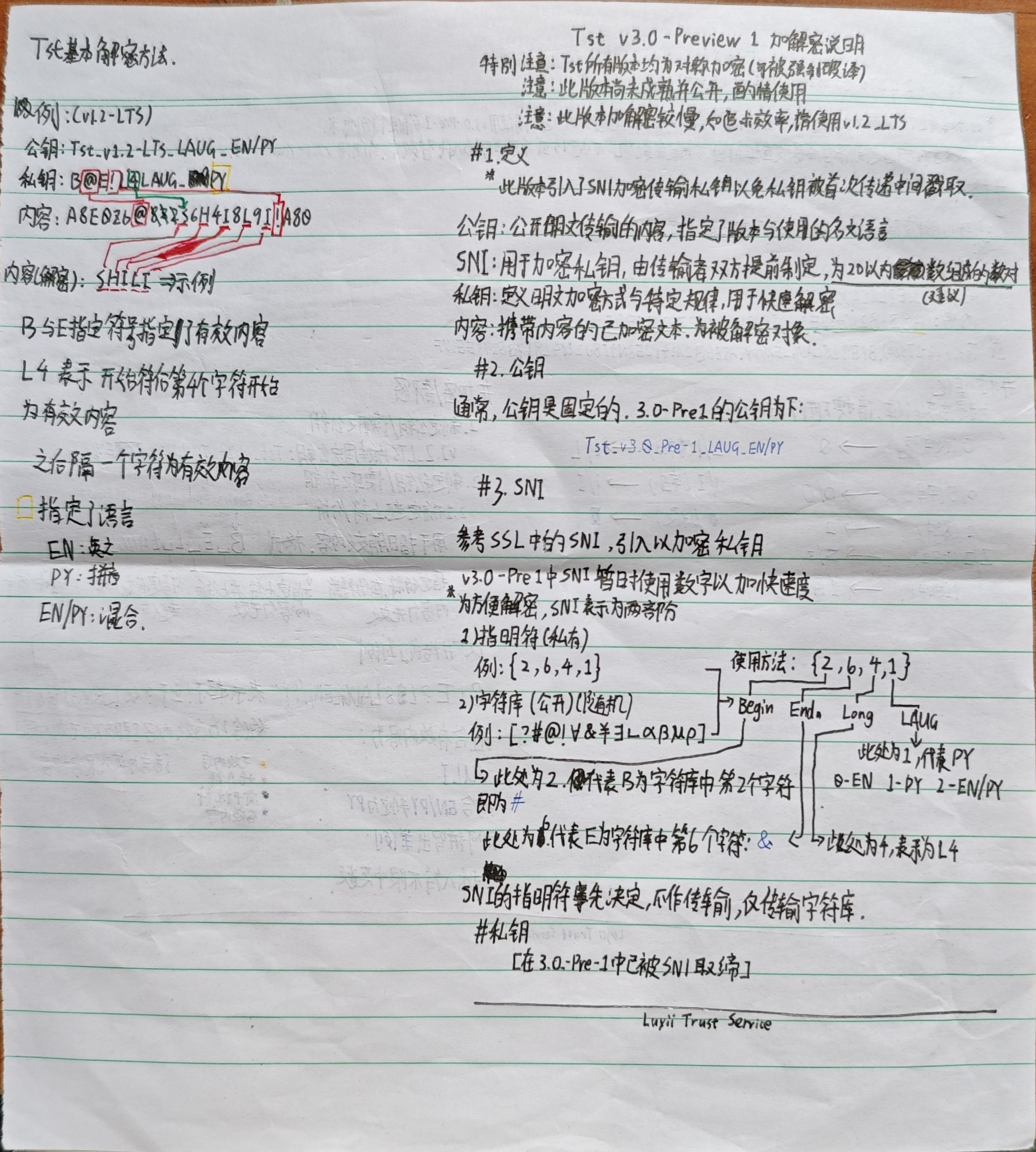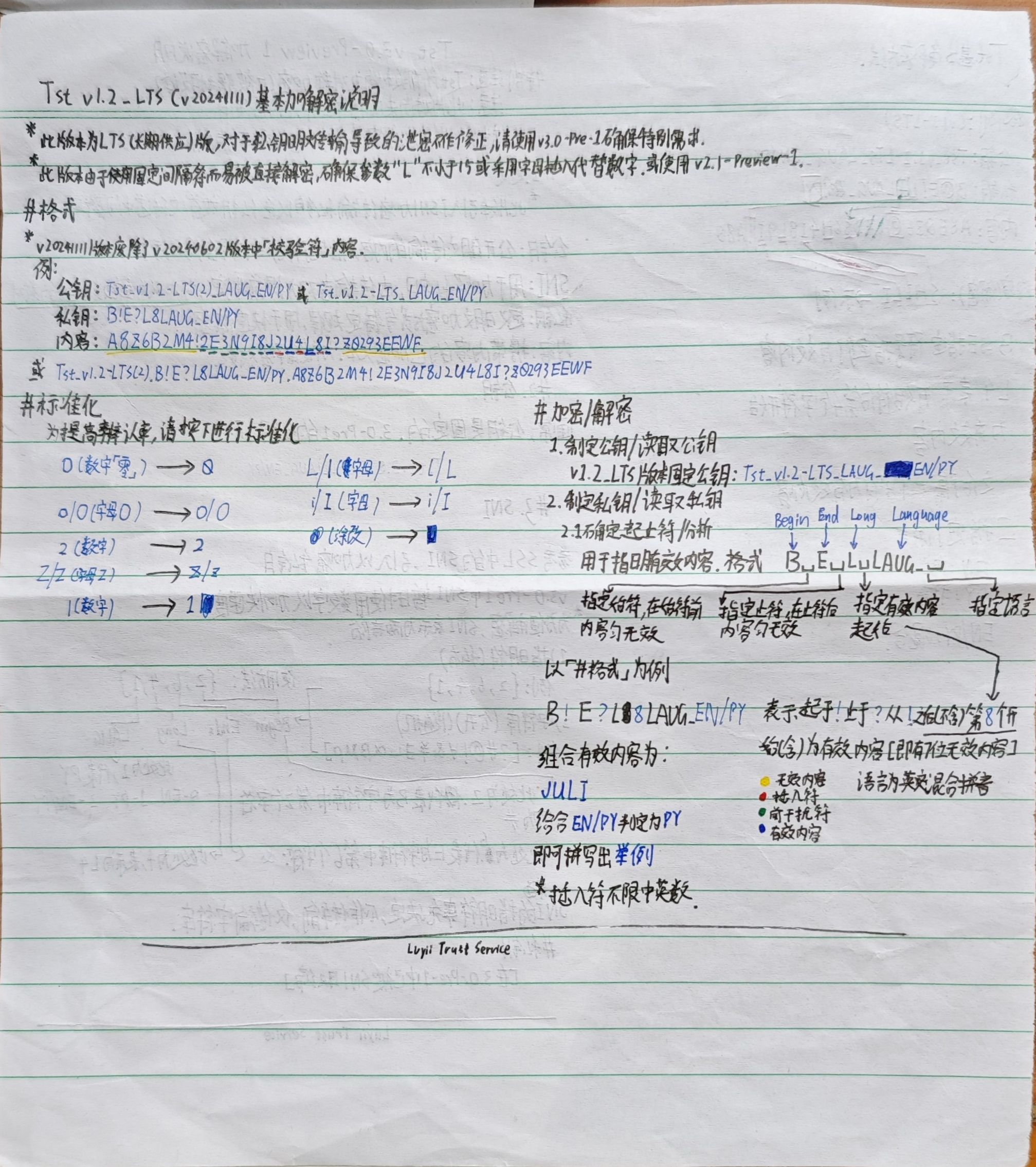 作品默认分类 Tst_v1.2-LTS(v20241111)等文本加密方式说明 该加密方式适用于纸质纸条传输 包括以下版本 Tst_v1.2-LTS Tst_v3.0-Pre 1 该加密方式适用于纸质纸条传输包括以下版本Tst_v1.2-LTSTst_v3.0-Pre 1