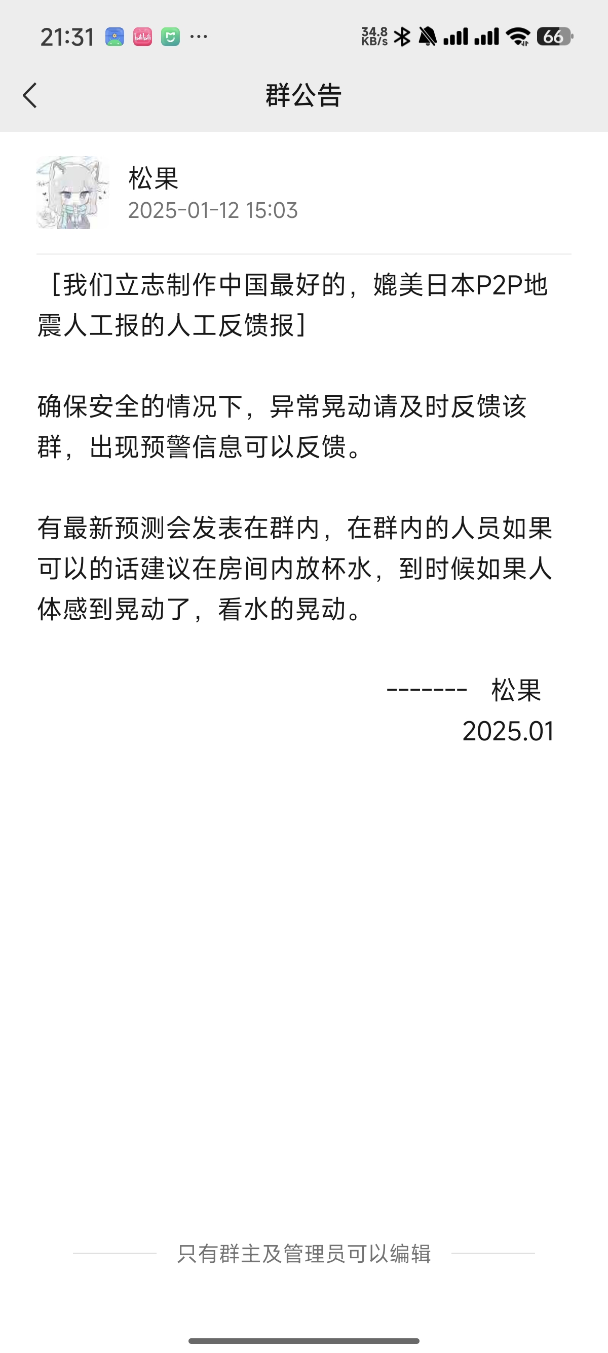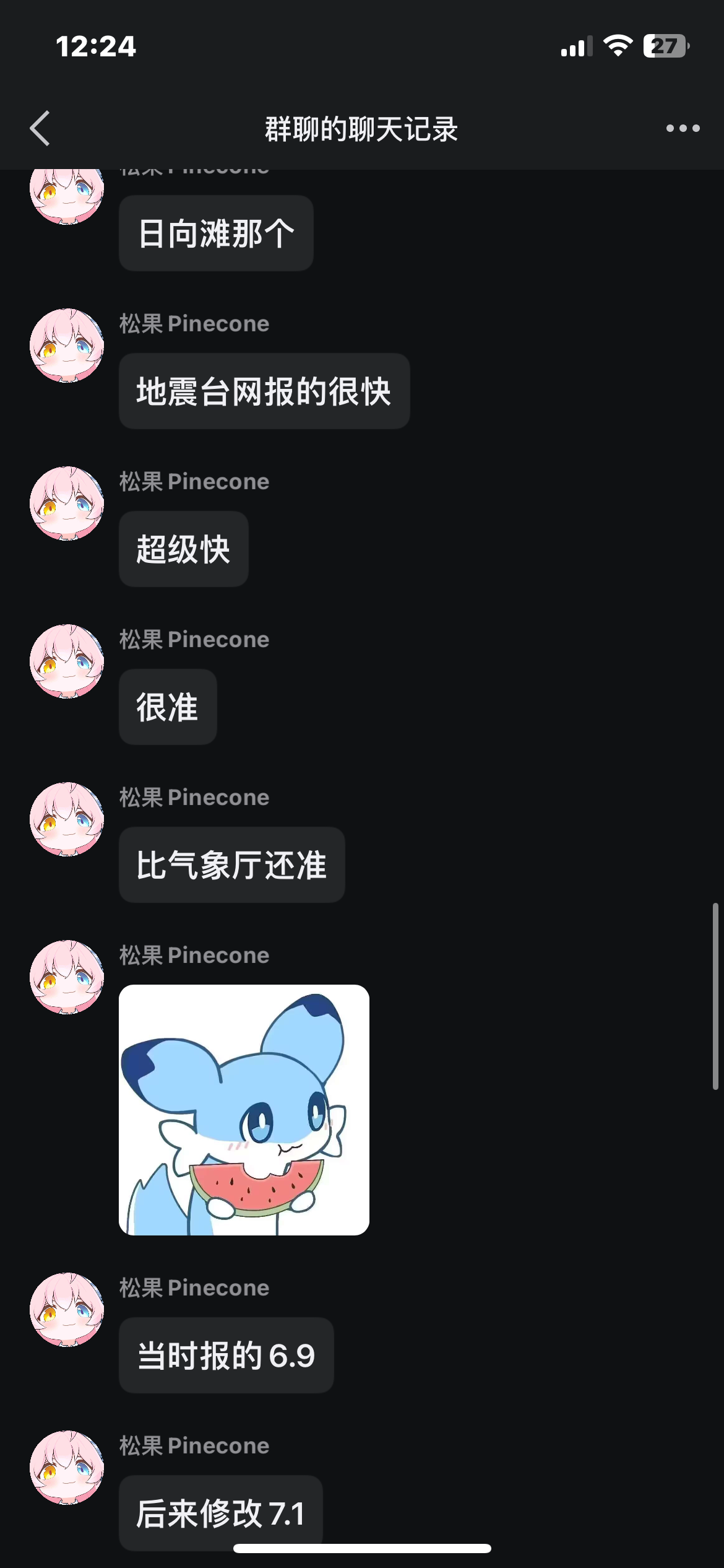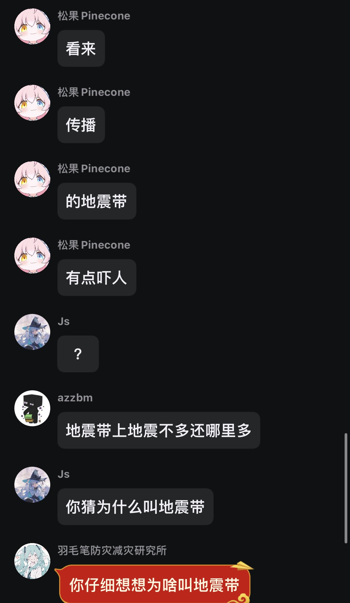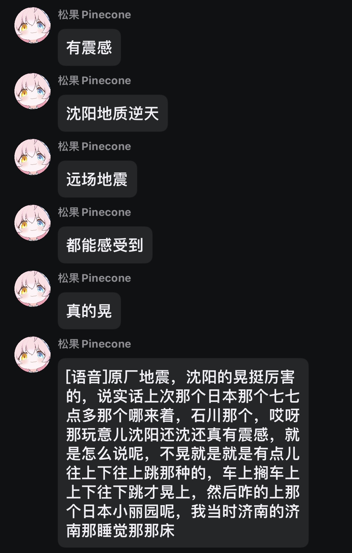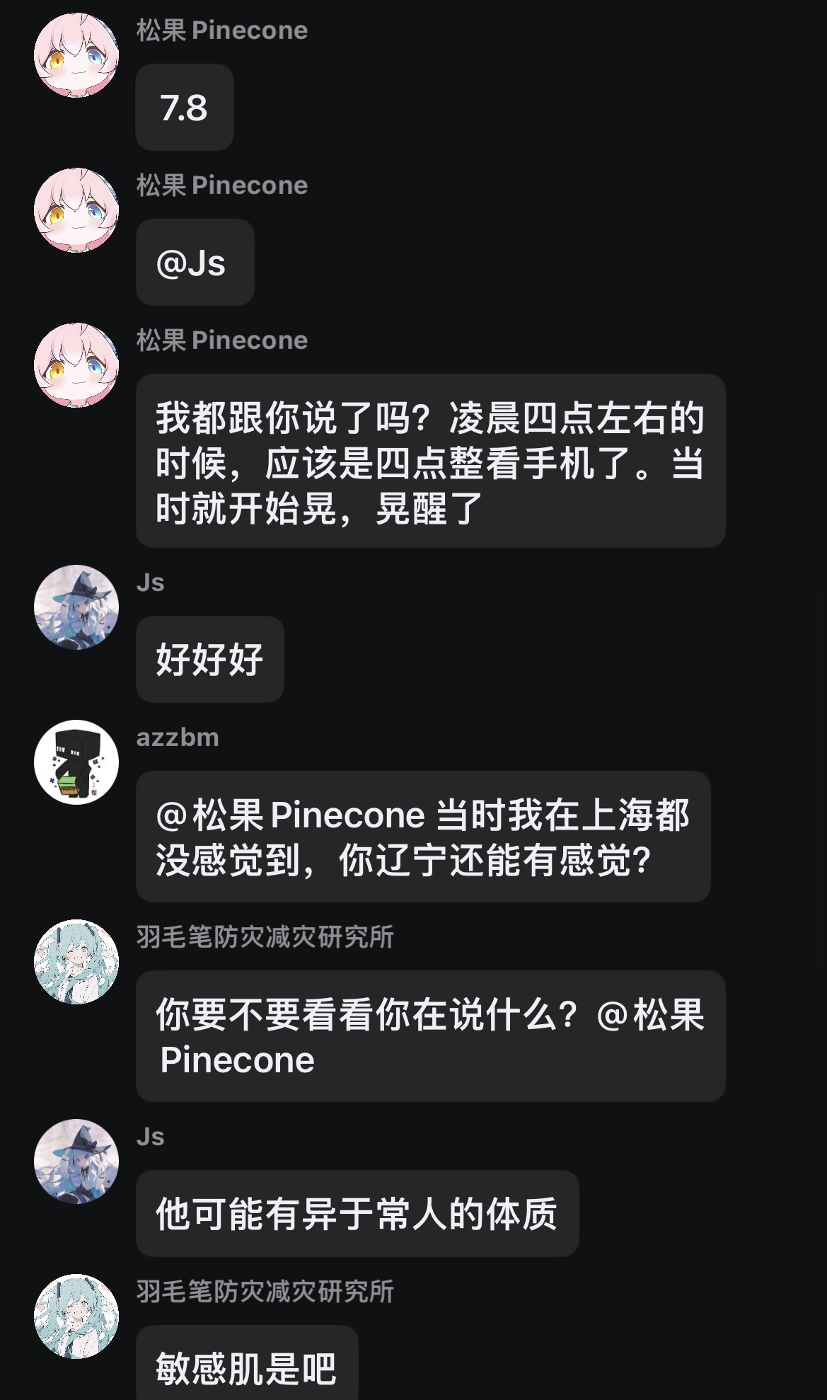 “松果地震晃动反馈群”