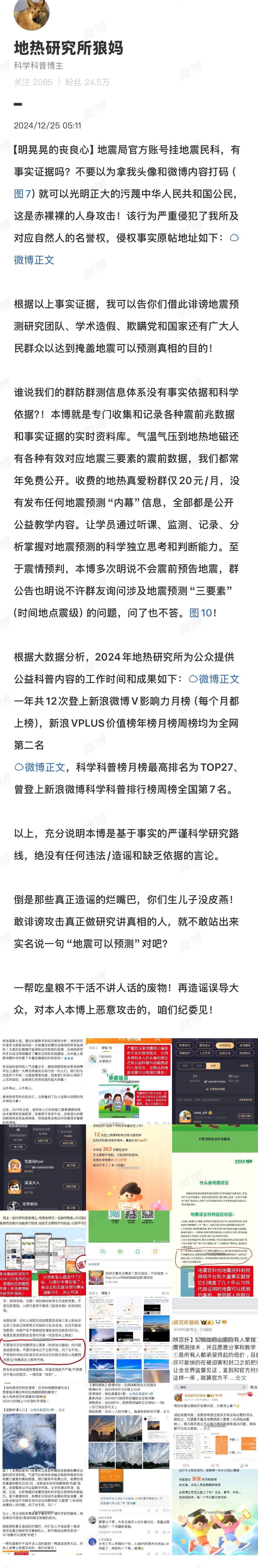 2024年12月24日,宁夏银川陆续发生两次地震,之后宁夏地震局在发布对于地震谣言相关科普时,引用到了狼妈的微博帖子并打码发表了出来