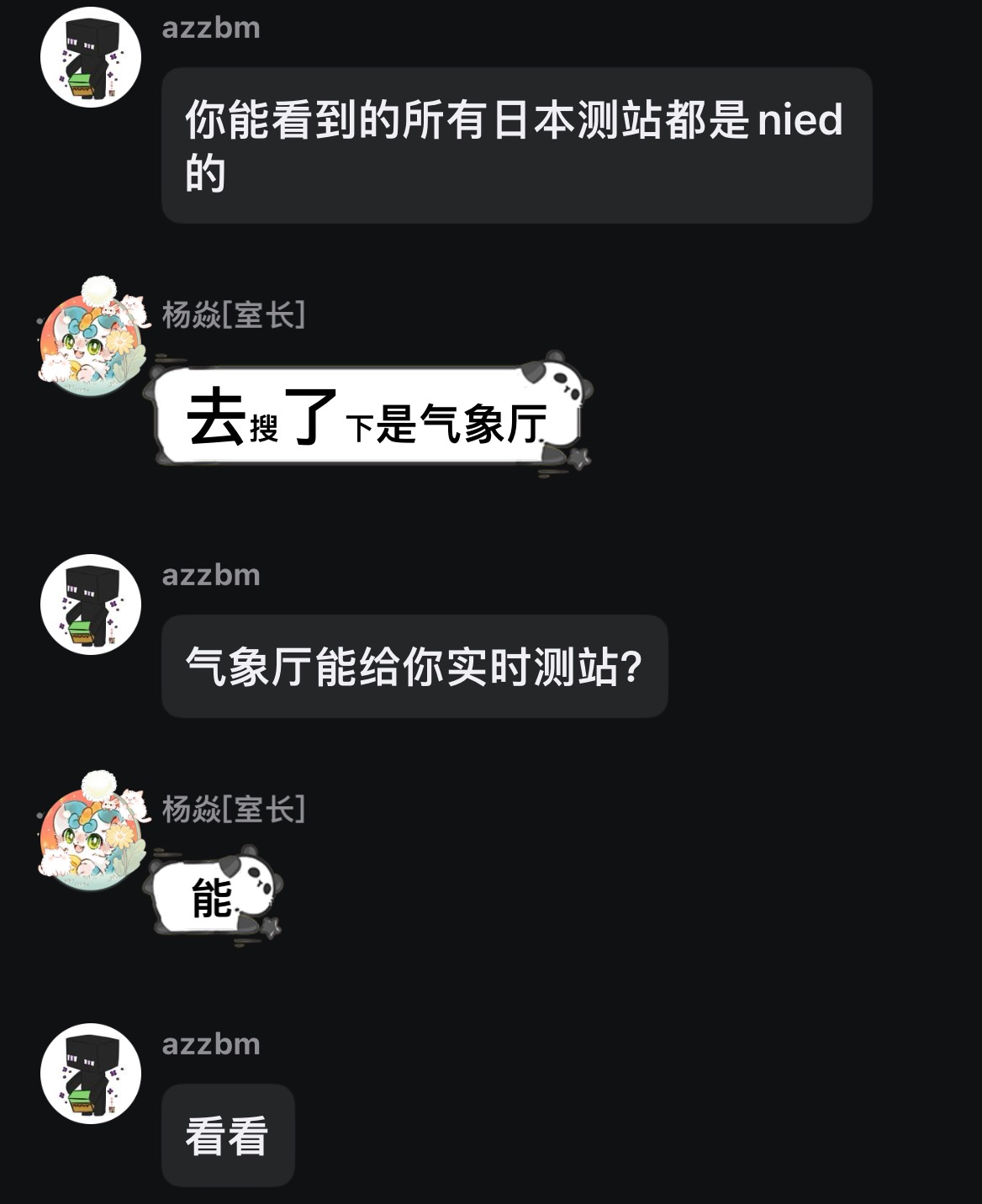 2023年1月16日,小笠原诸岛西方冲的M6.1地震时,在席的小淇和是彦涵在发现此地震的eew初报为M6.8后,说出了“这是18年(该地震发生于2015年)重现!”之类的话。此后是彦涵曾将此段录屏连同语音发送在自己的账号上,后被删除。