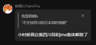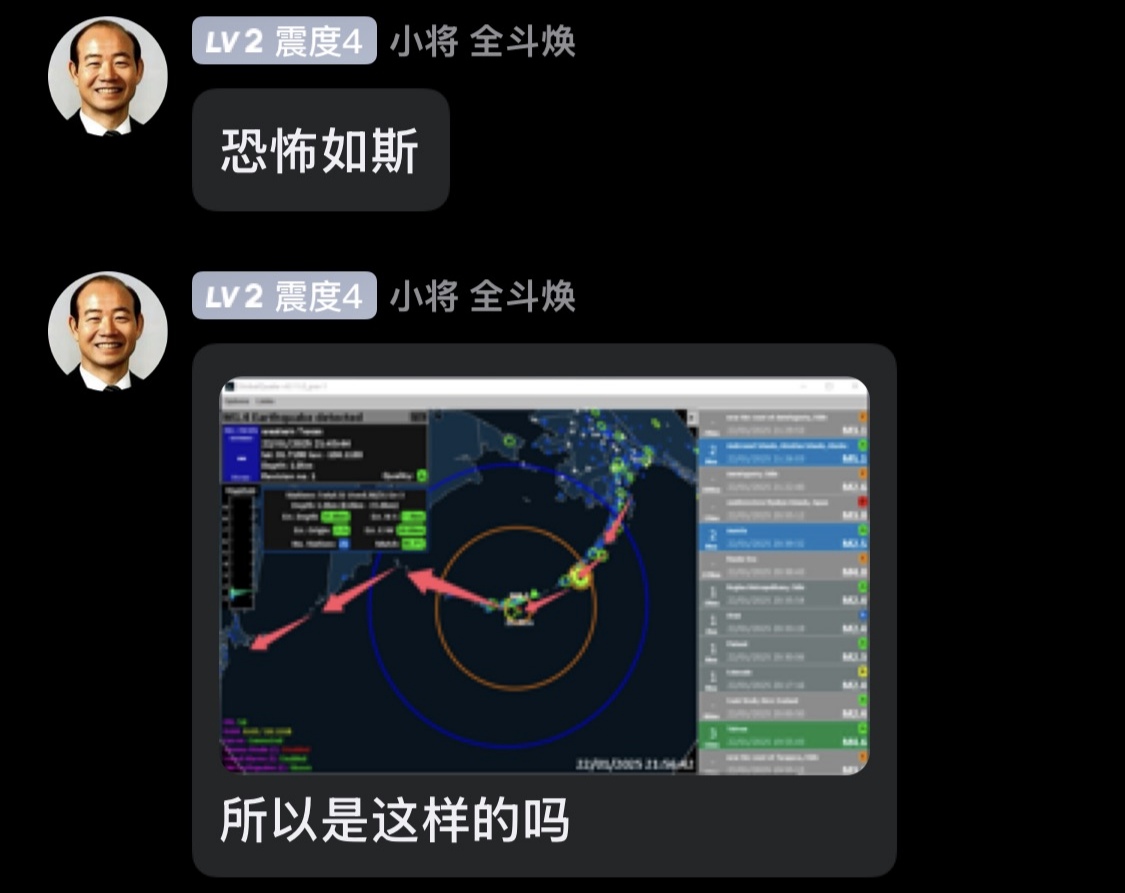 这位用户的问题在于,没有基本的地理常识,地震围绕地震带是不能再常见的事情,而且经常呈现一端带动整条地震带震到另一边的趋势,而且不知道什么是EEW,知道一个词就用,而且甚至没有查询到准确的数据,甚至语气还很肯定,完完全全是想当懂哥,但大失败。(还有你说话能不能一句话说完,我截图全把空间占完了)不过这是一个典范,在圈内这样的人很多很多,您在阅读此文章的时候请不要照镜子。